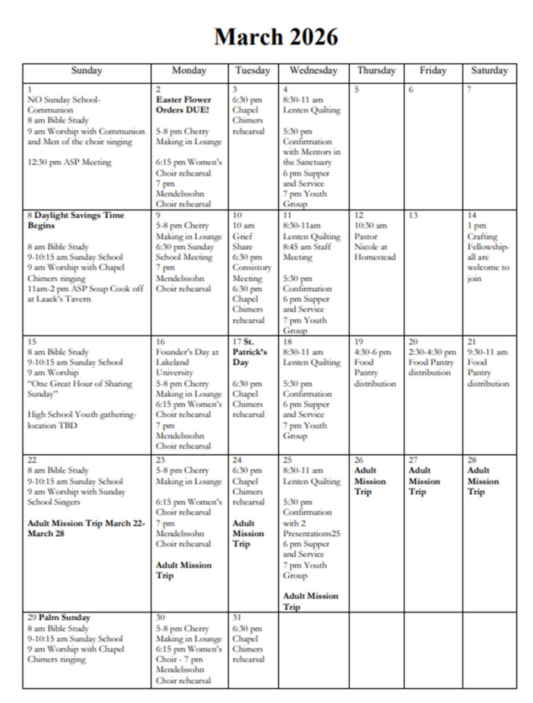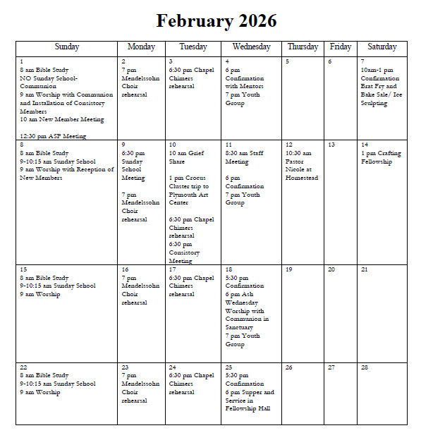 9 a.m. Sunday Worship, Office Hours: Mondays 8:30-12:30, Thursdays 10:30 a.m.-2:30 p.m.
