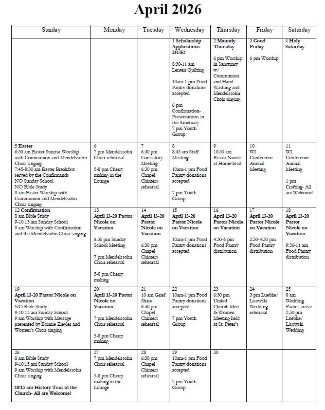 St. Peter’s U.C.C., Kiel, WI